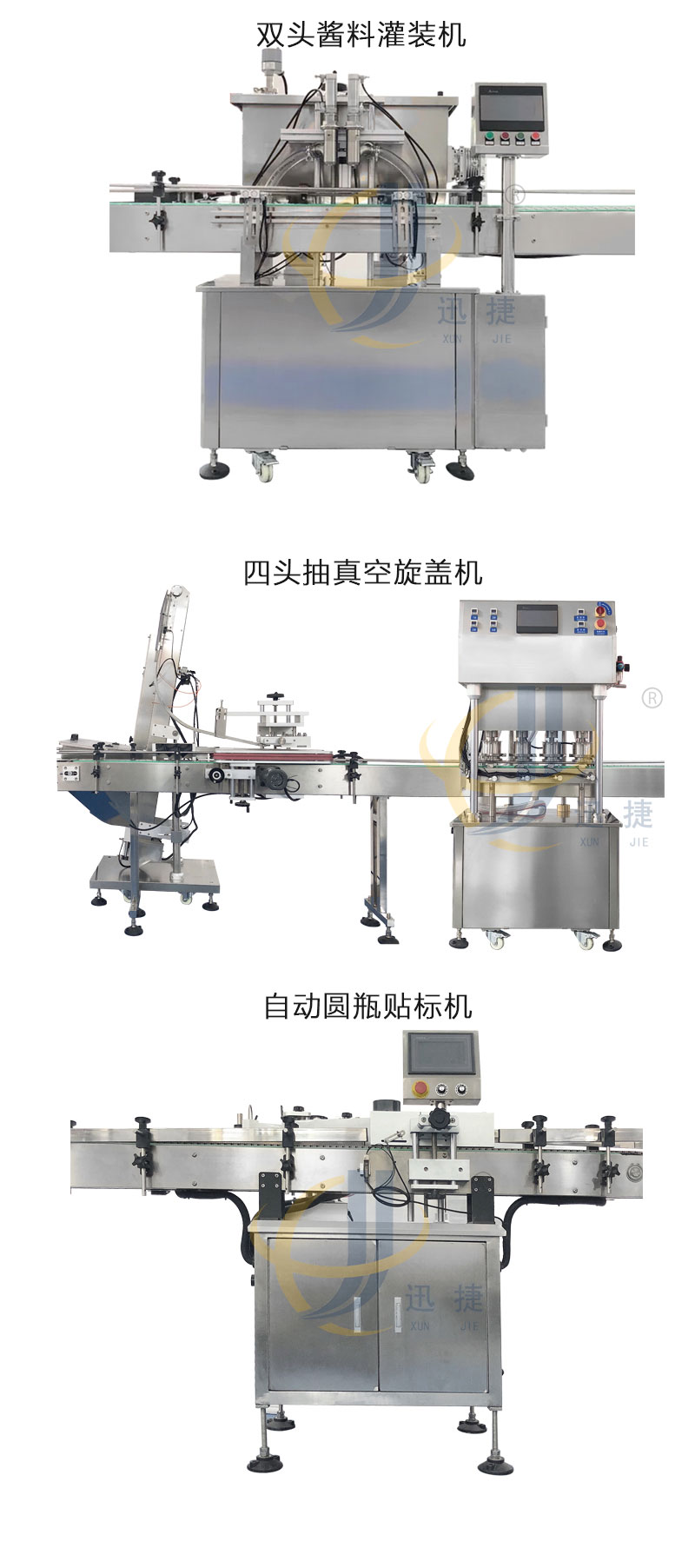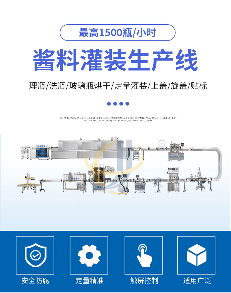 辣椒酱灌装生产线适合市面上多种酱料包装,如有油辣椒、海鲜酱、牛肉酱、香菇酱等的灌装。适用于圆瓶或者六棱瓶。