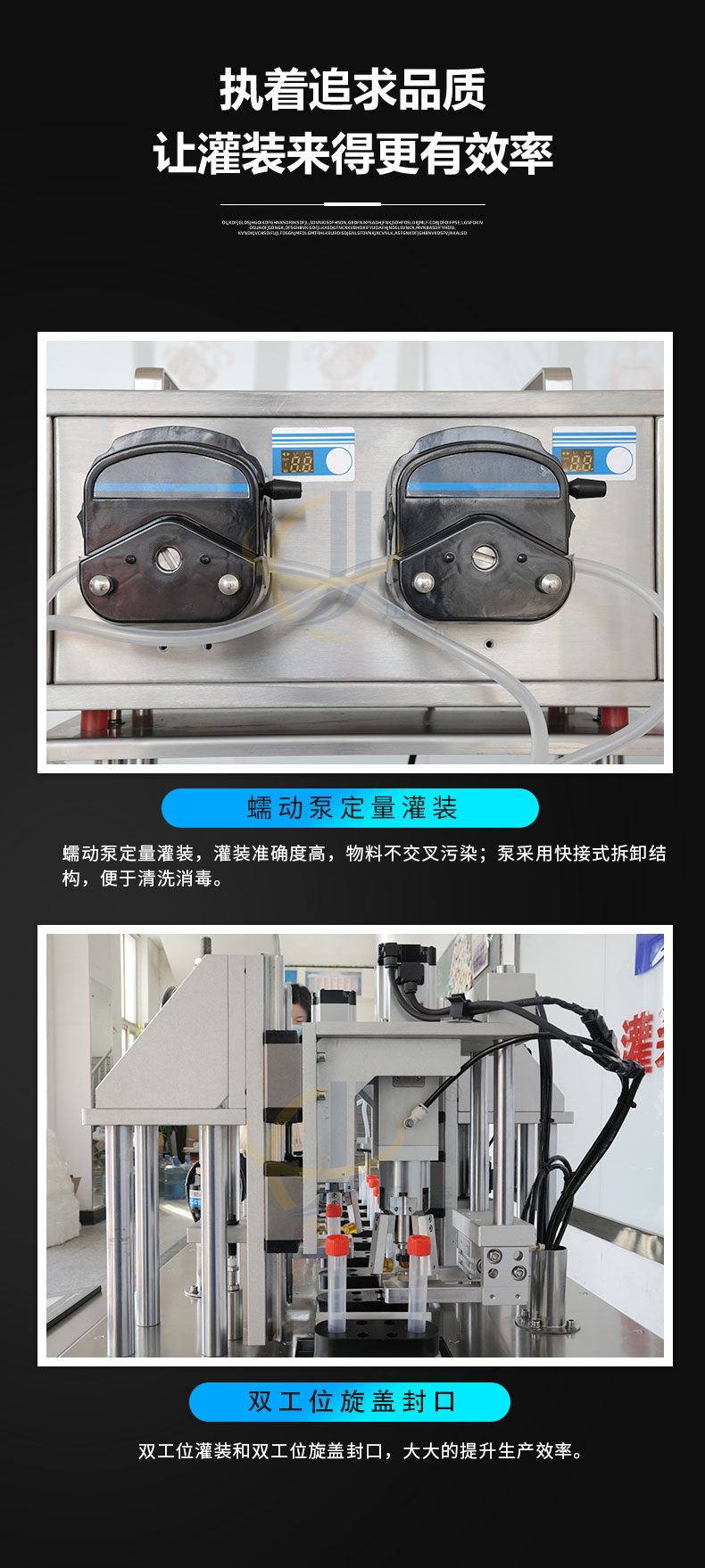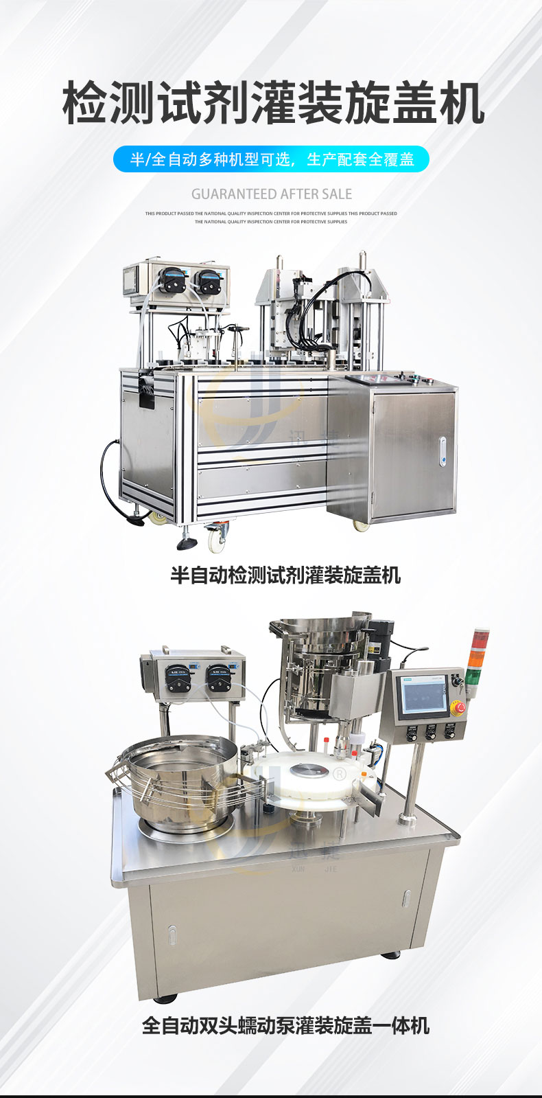 诊断试剂灌装旋盖机适用于诊断试剂、液体采样管等管状容器。本机可选配防尘罩搭配层流罩(FFU)结构,可达到局部百级环境下完成灌装及封盖。