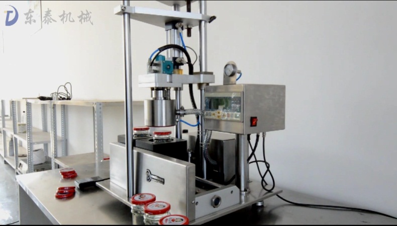 接着说,这里的玻璃瓶:指的是不同规格、不同尺寸(包括各种瓶型)的瓶子与瓶盖都可以完成旋盖机与抽真空,比如辣椒酱、甜面酱、罐头等马口铁盖玻璃瓶。适用的瓶直径为40-110mm,瓶高为50-180mm,并且可以定制哦,如果您需要各种不同瓶盖瓶身的旋紧与抽真空只需更换模具即可。操作简单方便,省时省力。