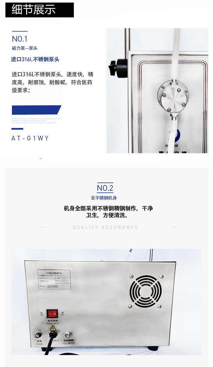 该机为磁力泵式灌装机,适用于药剂、化学品、油类、化妆品、食品、实验室用等无颗粒状液体的灌装。